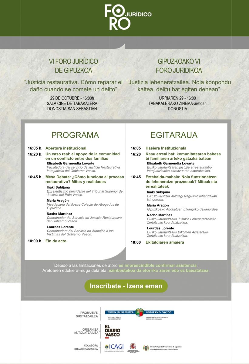 VI foro jurídico de Gipuzkoa: Justicia restaurativa. Cómo reparar el daño cuando se comete un delito